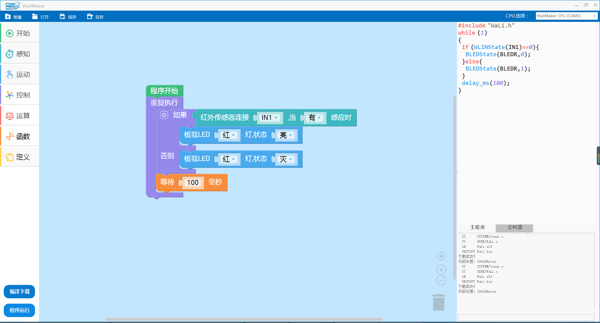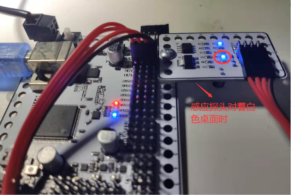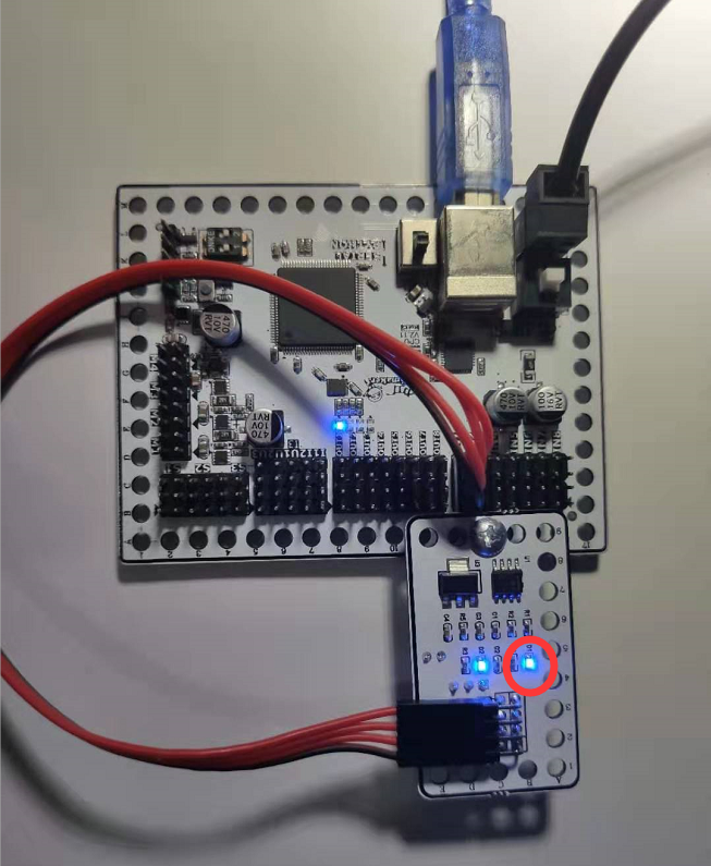 正确接线并按下电源开关后(未编程时),瓦力时光红外传感器_V1.0 上蓝色电源指示灯亮起,如下图所示。