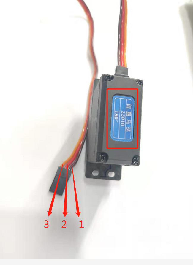3、信号引脚1。 - 伺服马达上会贴有铭牌,上面会标注有字样"伺服马达"、"22010"、"180°",其中用户需要注意的是"伺服马达"以及"180°"。