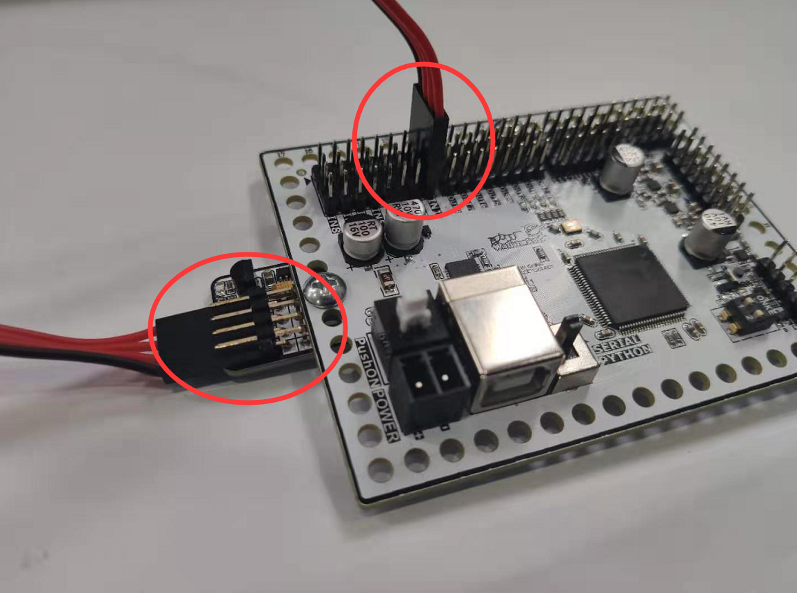 注意:接线时一定要严格按照 ''模块负极对CPU板负极,模块正极对CPU板正极'' 的原则进行接线, 切记不要正负极反接,或者将模块信号引脚接到电源正极或者负极。