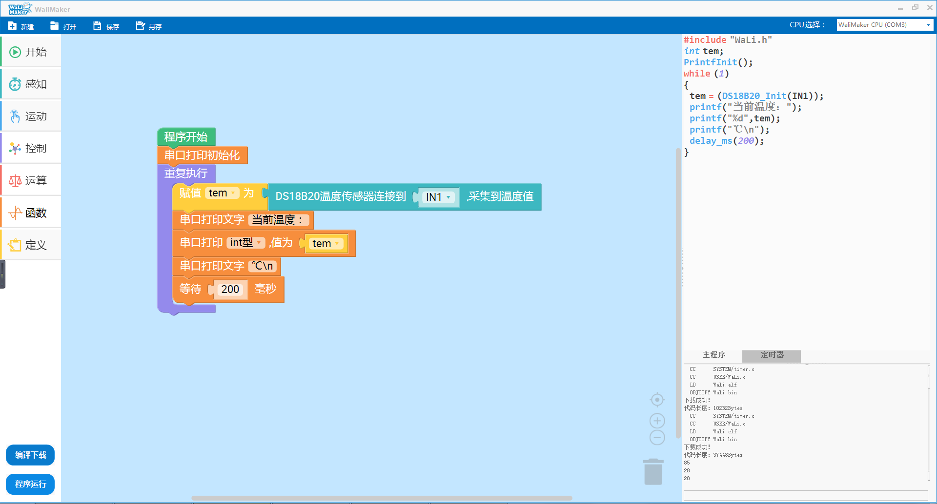 如图所示,右下角串口打印区域不断打印显示出当前温度。