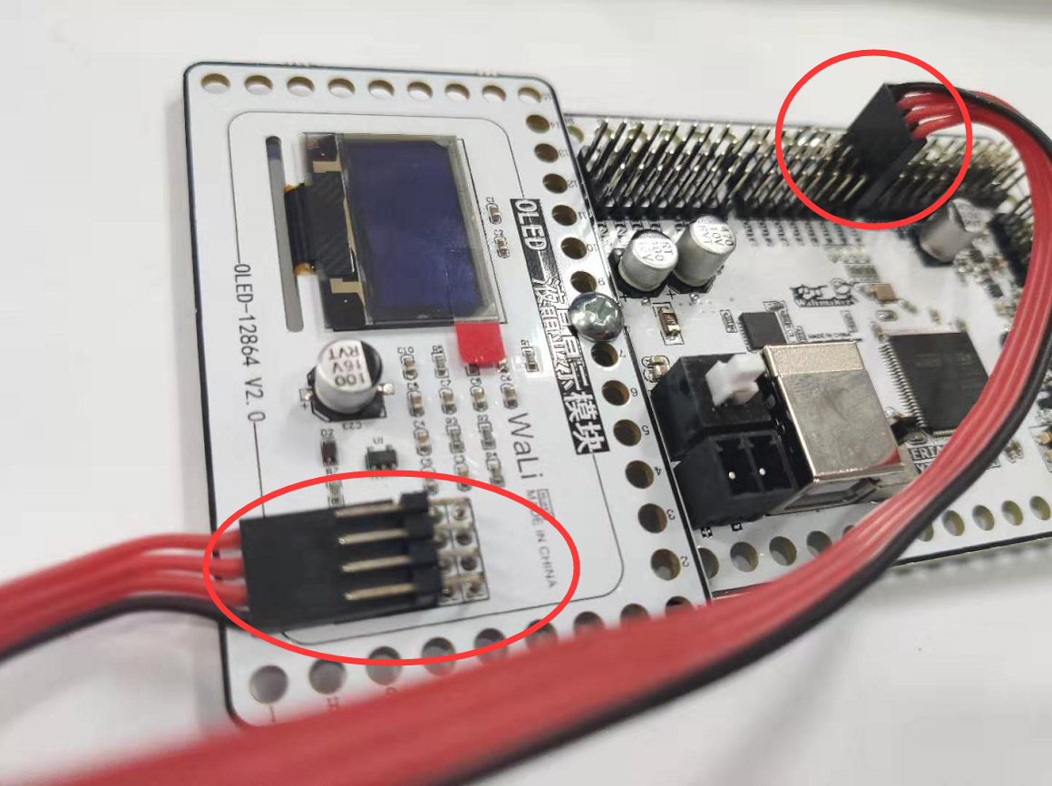 注意:正确接线并按下电源开关后,OLED液晶显示模块和CPU板不应出现冒烟、发出烧焦味道的情况。否则极有可能是接线错误,此时应迅速关掉电源或者拔掉排线,以防模块和CPU板因接线问题而导致的进一步损坏。